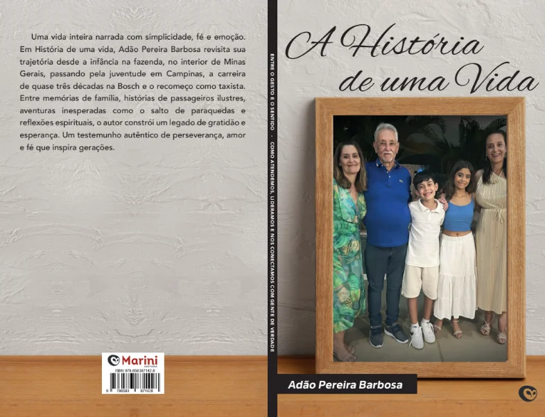 Em “A História de uma Vida”, o mineiro Adão Pereira Barbosa compartilha, com delicadeza e verdade, uma trajetória marcada pela fé, pelo trabalho, pela gratidão e pelos laços familiares que o sustentaram desde a infância na zona rural de Salinas (MG) até a maturidade em Campinas. A obra, publicada pela Marini Editora, resgata memórias afetivas, episódios da vida no campo, desafios precoces, conquistas profissionais e a força espiritual que moldou sua forma de existir.